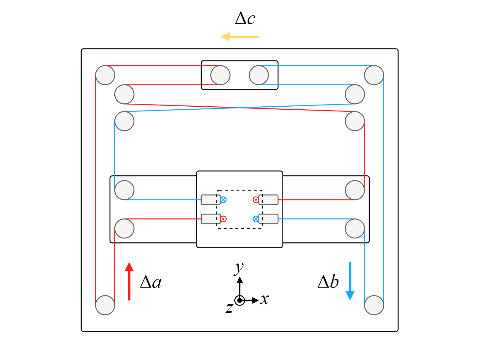 It should be noted that other mechanisms with the name CoreXYZ have been proposed, but the version peresented here is the most closely related to the original CoreXY design, as it simply adds Z actuation to the carriage by adding functionality to cables that were already present.